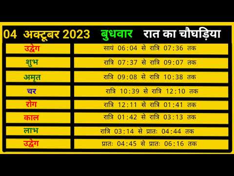 💥04 अक्टूबर 2023💥दिन का चौघड़िया||रात का चौघड़िया💥 aajkachoghadiya